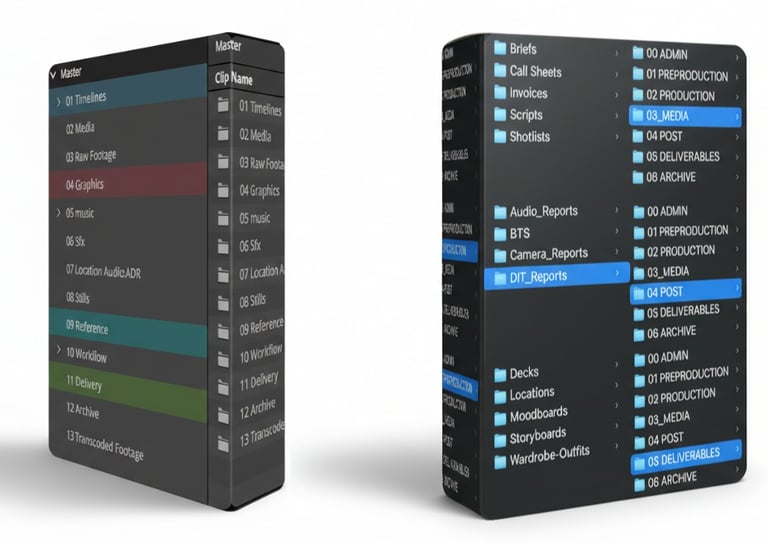 A professional Finder folder system and DaVinci Resolve bin template built for commercial and fashion campaigns.